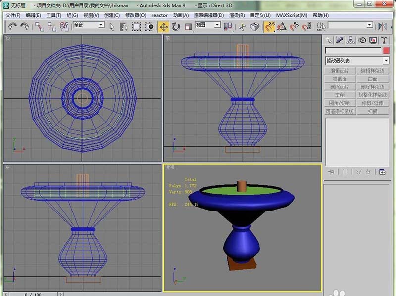 3、给画好的线条加载一个车削修改器。