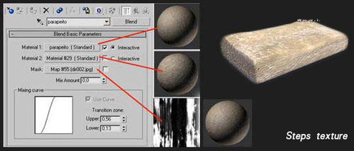 台阶:对于这个物体,我使用了3ds Max中的Blend(混合)材质,因此它的纹理并不复杂。