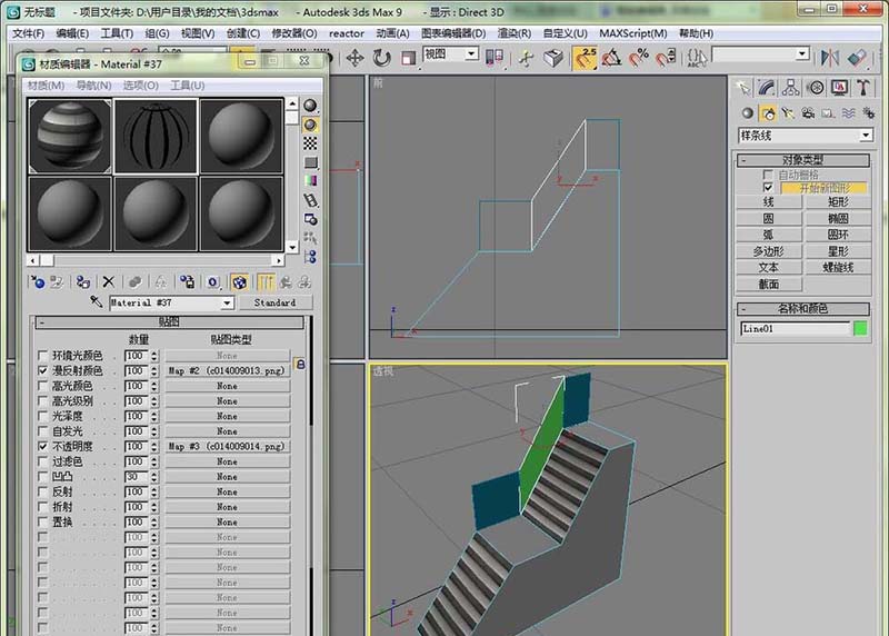 7、打开3dmax的材质编辑器,将这个台阶的照片拖到材质球里,然后选择面图层,将材质赋给面。在设置一下uvw贴图。这样台阶的样子是不是也显现了。