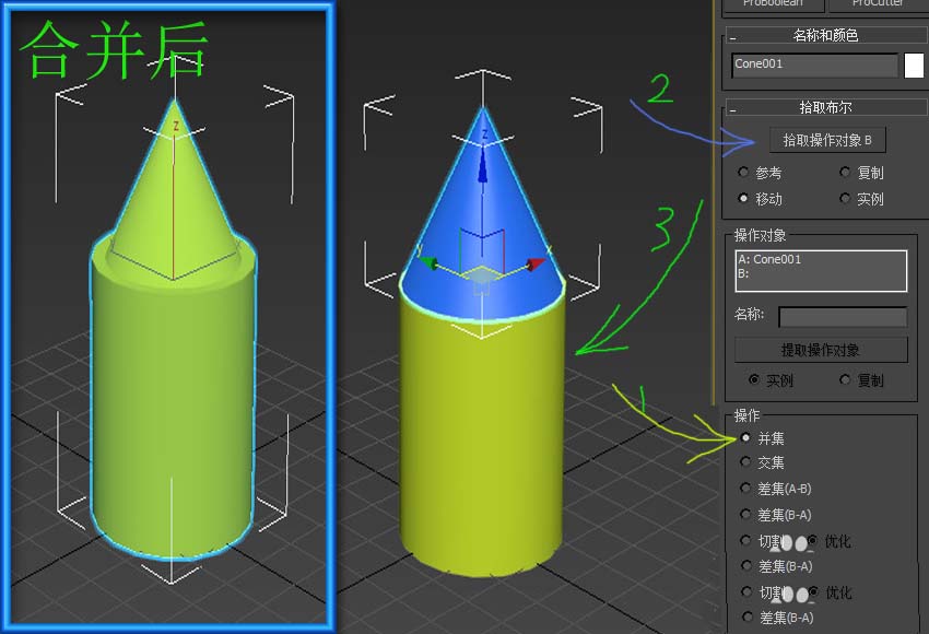 网上有很多物体合并的教程,但大部分都是通过“组”的“集合”功能实现的,并不是真正的将物体进行合并为一个。这里要介绍的是将两个物体完全合并为一个的方法。