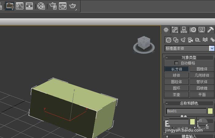 2、在【标准基本体】的面板上,鼠标左键单击(长方体),接着在透视图中,拖动绘制一个长方体出来,如下图所示。