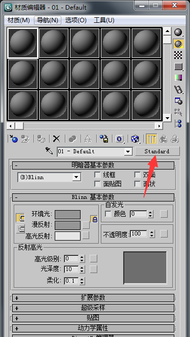 9、选择物体,点击这里的附近按钮,这样就把材质赋予这个物体上面了