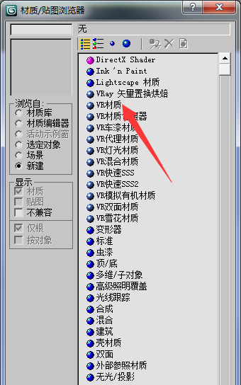 1、打开一个新的材质球,把材质设置成vr材质,要先选择vr渲染器,这样才可以设置vr材质。点击这个位置