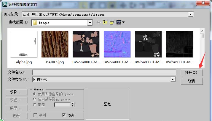 7、在弹出的对话框里面选择位图,选择贴图的位置,选择贴图,点击打开