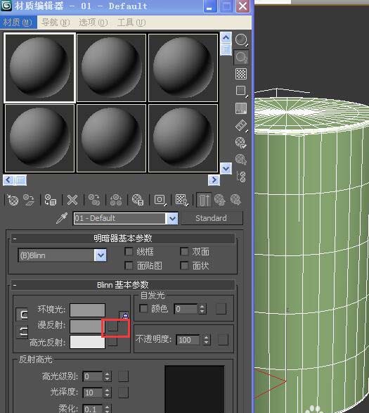 1、启动3dmax软件,并建立一个实验模型。本例中我是建立了一个圆柱体的多边形。如图: