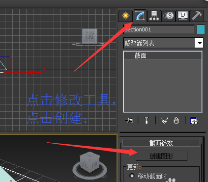 2、在立体图中,点击创建面板——点击图形——截面。