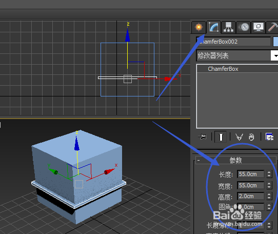 2、我们选择用切角长方体,选择切角长方体之后画出一个图像;之后我们去修改参数;