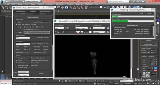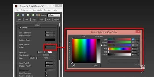7、完成模拟后,设置烟的颜色开始。 转到渲染部分,然后抽烟参数。 将烟的颜色设置为灰色,然后打开投射阴影和接收阴影选项,添加光时,将看到烟的阴影。