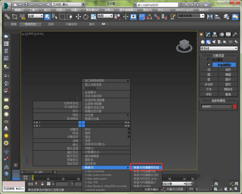 2、任选一条线将其转换为“可编辑样条线”。我这里就选择line4,然后右击选择转换为可编辑样条线
