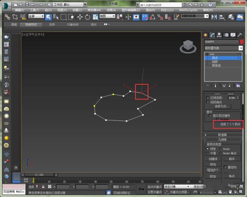 4、附加之后就都变成line4了,但是这个样条线还不是闭合的。因为在顶点处,看上去是闭合的,其实还是有两个顶点,那么实际上就还是断开的。