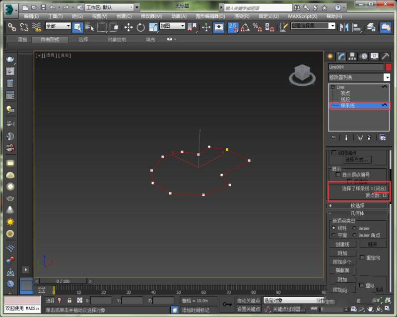 6、焊接完成之后可以检查一下,点击修改面板的样条线,然后选择这个图形中的线,在右边修改面板会显示这个样条线是断开的还是闭合的,参考下图。