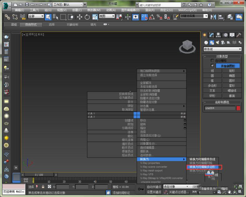 7、如果确认是闭合曲线了,那么就可以将这个样条线转换成多边形了。还是右击,选择转换为可编辑多边形。