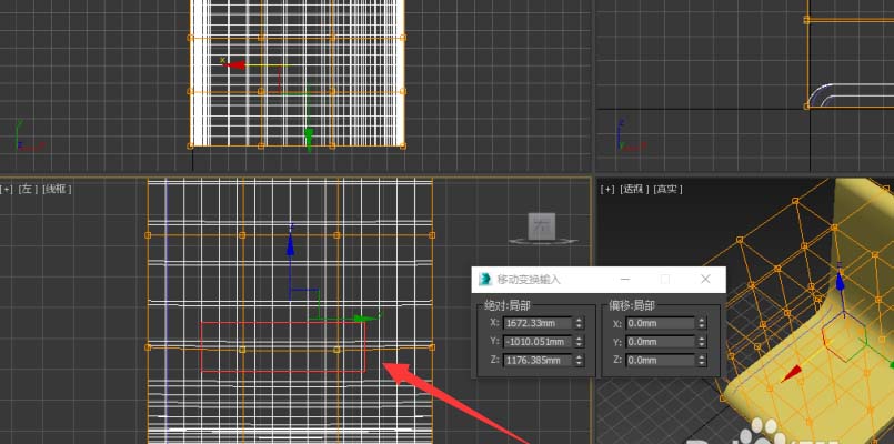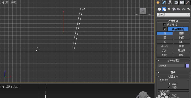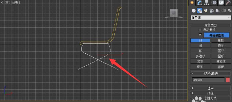 1、使用“线”命令,在前视图进行椅腿的绘制,并进行调整;