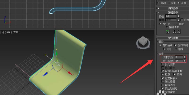 5、放样生成椅面及椅背,调整图形步数及路径步数;