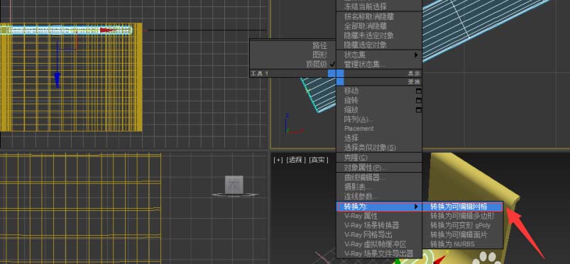 4、单击右键,将鼠标移动至“转换为:”将生成的椅腿转换为可编辑网格;