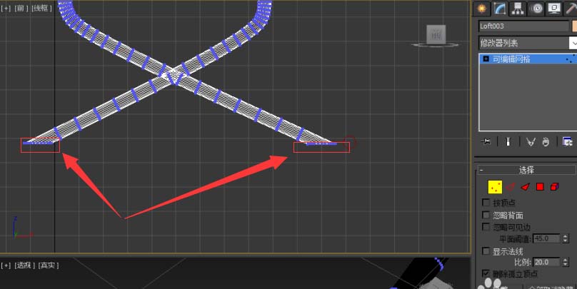 2、选中线型,进入修改器面板,选择“点”子物体级别;