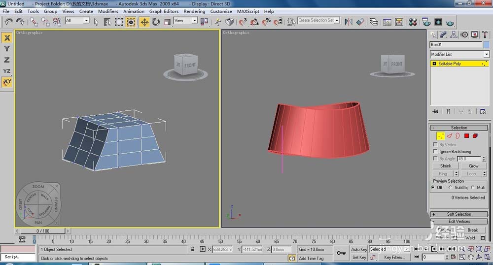 6、激活左视图,调整一下上面的顶点,效果如图。