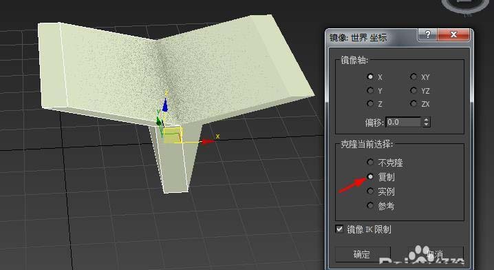 5、调整镜像轴可以改变镜像的方向,下面是Y轴的镜像的效果。