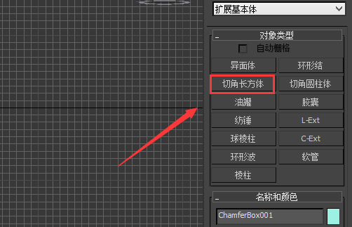 11、然后在扩展几何体内找到切角长方体选项,如图所示: