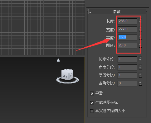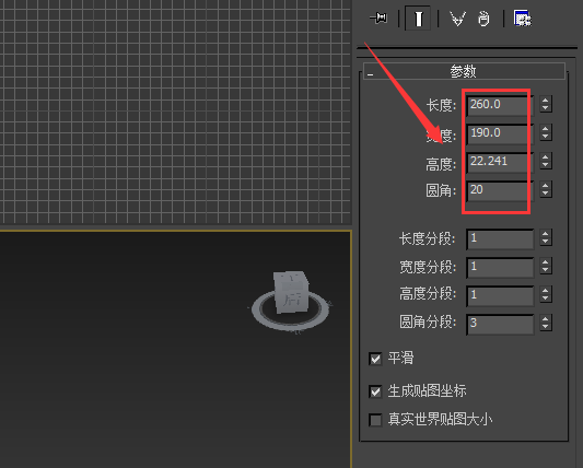 12、选择切角长方体选项,创建一个切角长方体,并调节其位置和大小如图所示: