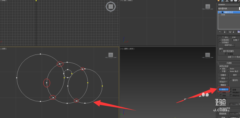 4、进入点物体级别,选择“优化”工具,在图所示圆圈处添加点;