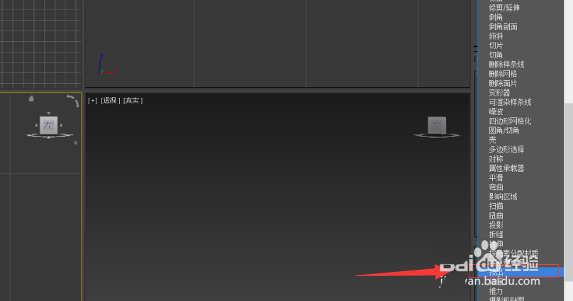 7、在右侧修改器列表中选择“挤出”修改器,修改挤出高度为50mm;
