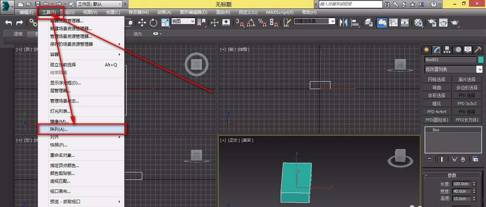 2、选择目标模型,点击工具里面的阵列,先做出所有的台阶。
