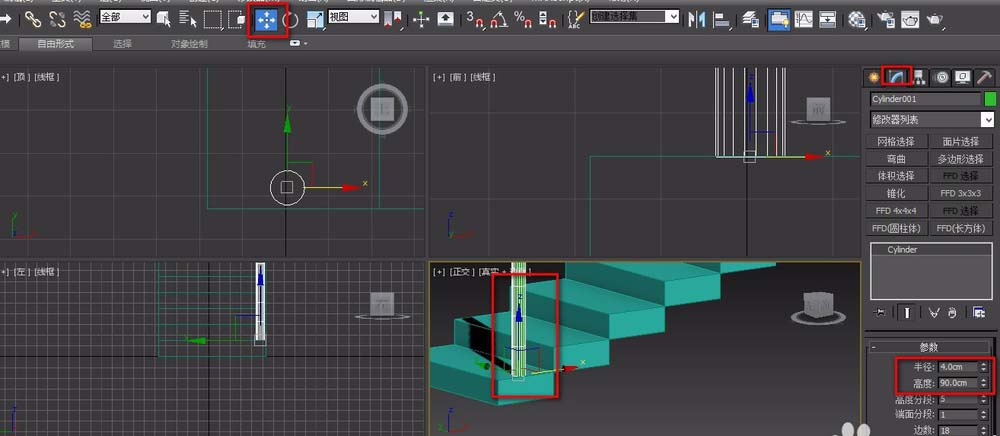 8、利用旋转和移动,使扶手柱子处于正确的位置。