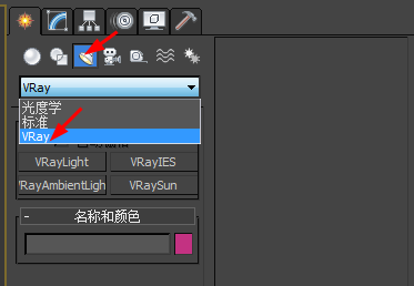 1、在创建面板点击灯光,选择VRay灯光