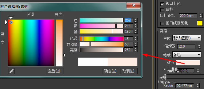 4、将灯光的颜色修改为暖色调