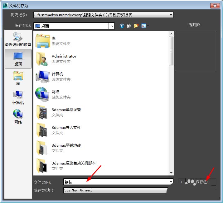 4、在文件另存为窗口命名文件为抱枕,点击保存