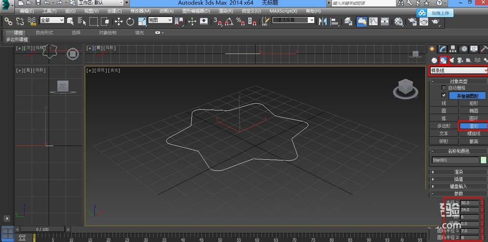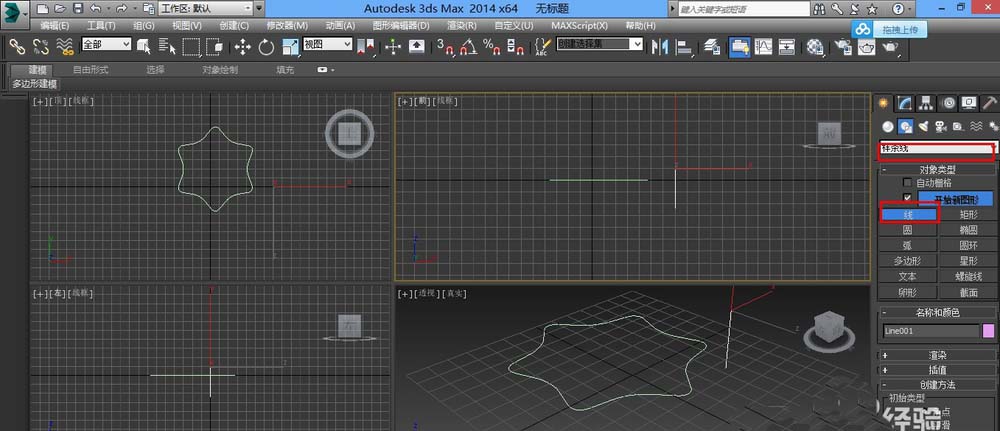 3、选择星形,点击几何体 复合对象,放样 获取路径,点击直线,变成几何体,