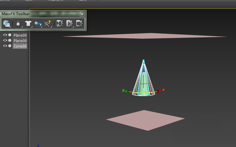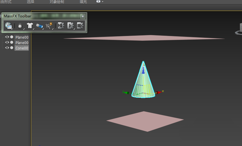 3、当点击模拟时,发现圆锥体停留在圆环中而不落下,这是因为物理网格的缘故。