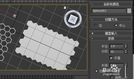 1、打开3D max,点击创建——图形——多边形 画一个六边形,设置半径为36,颜色最好先调为灰色,如图所示。