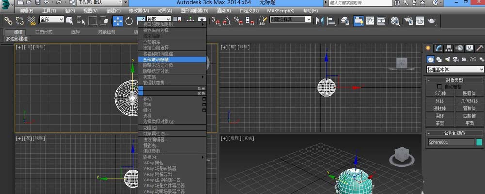 3、选择其中一个几何体,右击鼠标,找到隐藏未选择对象
