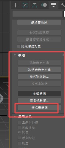 6、一直拉到“冻结”边页栏,点击“按点击解冻”,然后点击你想解冻的物体,即可立即解冻。