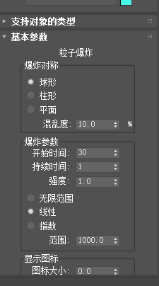 8、在空间扭曲中还有一个粒子爆炸功能,这个我们有时也会用到,具体的操作设置如图
