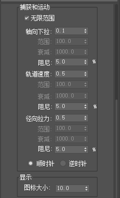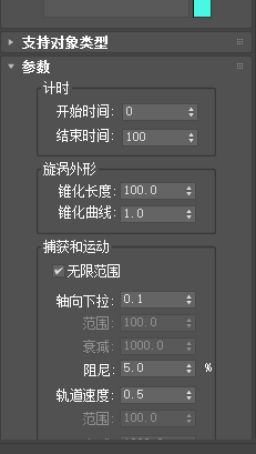 5、还有旋涡功能,在这里面我个人认为推力功能和漩涡功能还有路径跟随都是我们经常会用到的空间扭曲功能,打开旋涡以后同样会在下方出现设置参数,如图