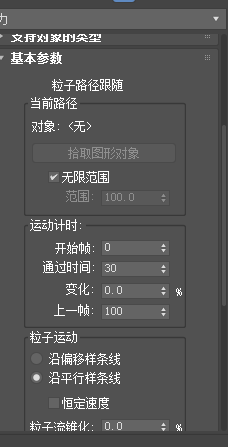 6、下面这两个图就是路径跟随的操作设置,我们可以 在这里进行设置参数,如图