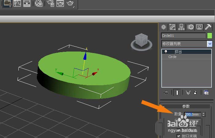 3、 在【挤出】的参数面板上,输入挤出的数量。然后,在【挤出】的参数面板上,输入挤出的数量,这样就成为立体的图形了,如下图所示。