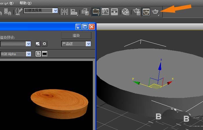 8、单击【渲染】按钮,可看到渲染的显示效果。接着,在透视图上的立体圆形没有出现木纹图,单击【渲染】按钮,可看到渲染的显示效果,一个漂亮的案板就做好了,如下图所示。