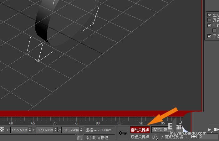 10、选择【自动关键点】按钮,准备制作一个小动画。接着,鼠标左键在底部的动画区域中,选择【自动关键点】按钮,准备制作一个小动画,如下图所示。