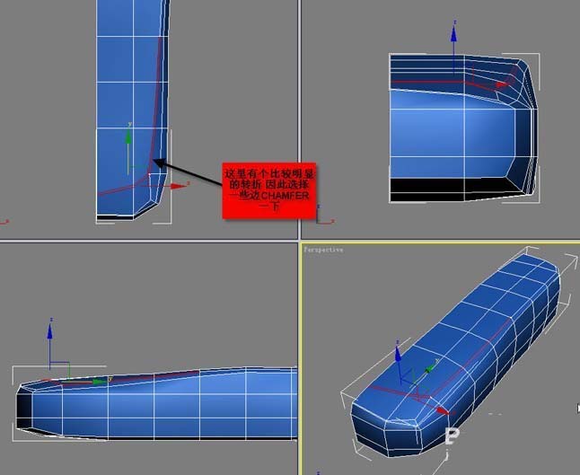 4、这里有一个比较明显的转折,因此选择一些边进行CHAMFER。