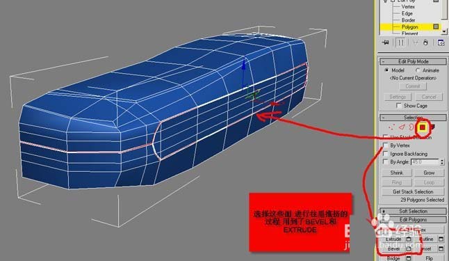 9、选择这些面进行往里挤压,可以用到BEVEL和EXTRUDE操作。