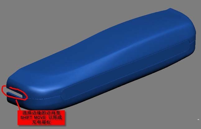 11、选择边缘的边向里进行SHIFT MOVE操作,形成充电部位。