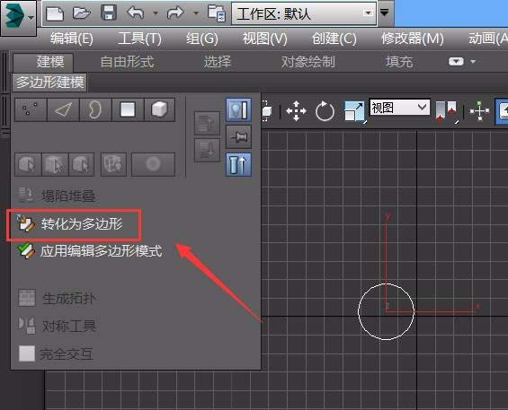 4、选择创建的圆柱体,再在常用菜单里找到转化为多边形选项,如图所示: