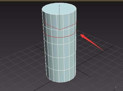 5、将圆柱体转为多边形之后,选择需要插入循环边的一条边,再在编辑工具里找到循环选项,如图所示: