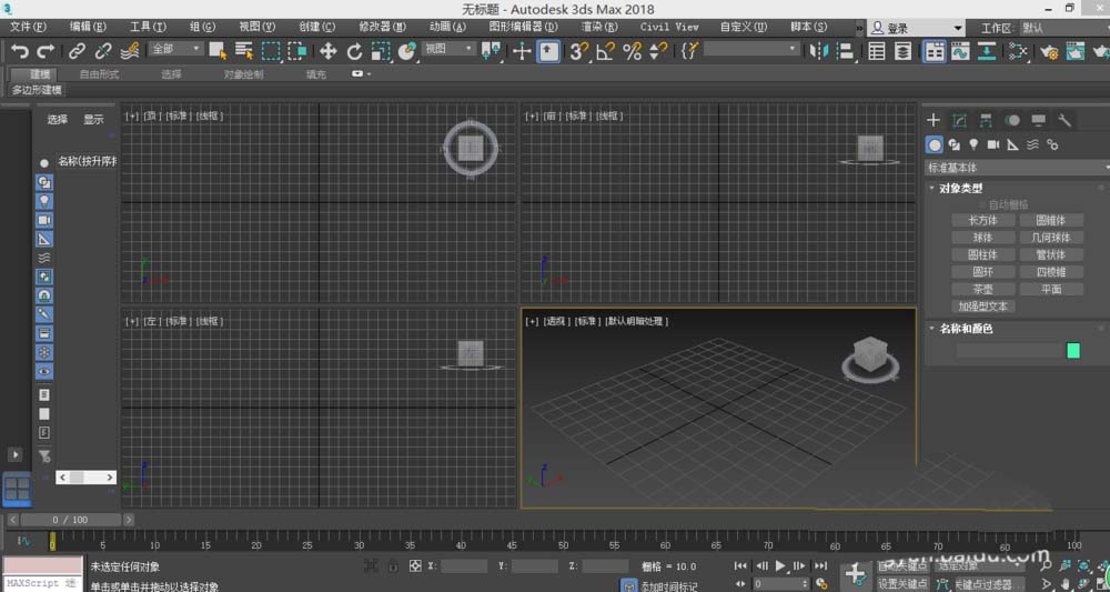 2、打开3ds Max以后的操作界面一般都会略有不同,但是不会影响我们的具体操作,这与我们使用的3ds Max版本有很大的关系,我的3ds Max操作界面如图