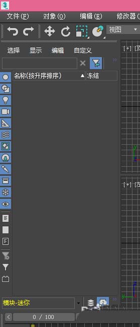 5、再来把工作区修改为模块迷你,我们就可以看到3ds Max的操作界面又发生了变化,功能又更改了,如图