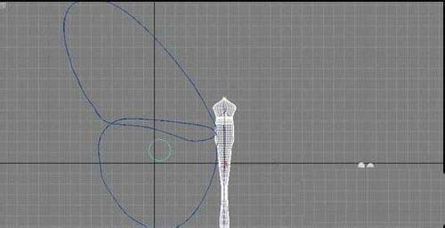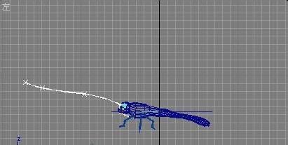 使用“编辑网搁”工具对各层顶点进行初步的编辑,制作出分节的效果;切换到顶视图,选择“编辑”“克隆”命令,将复制方式选为“复制”,进行复制,使用移动、旋转工具移动到合适的位置。通过这种方法得到另外两只腿,使用“编辑网格”工具对复制出来的腿的顶点进行编辑,使其形状发生少许改变;单击“图形”按钮进入二维形体创建面板,单击“线”按钮,在视图中根据背景图绘制一条曲线作为蝴蝶的触须,如图10所示。